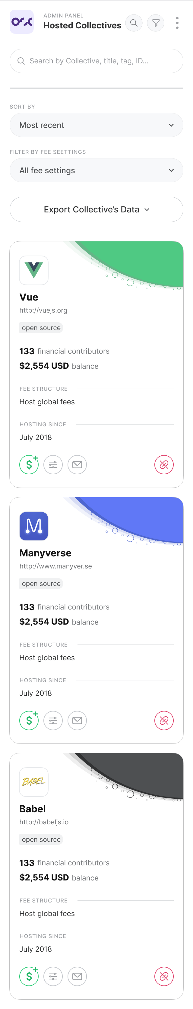 Open Collective is purpose-built to streamline your processes, reduce overhead, increase transparency, and enable your organization to hold and manage funds for more projects in less time. Learn more.