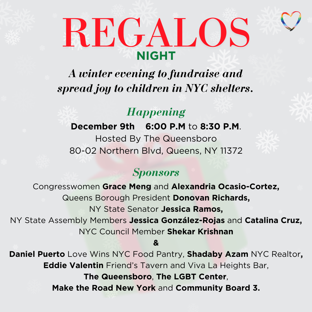 If you can, please make another donation before the year ends to our no one stays hungry campaign or attend our REGALOS NIGHT fundraiser this Saturday, December 9th at the Queensboro in Queens, NYC .
