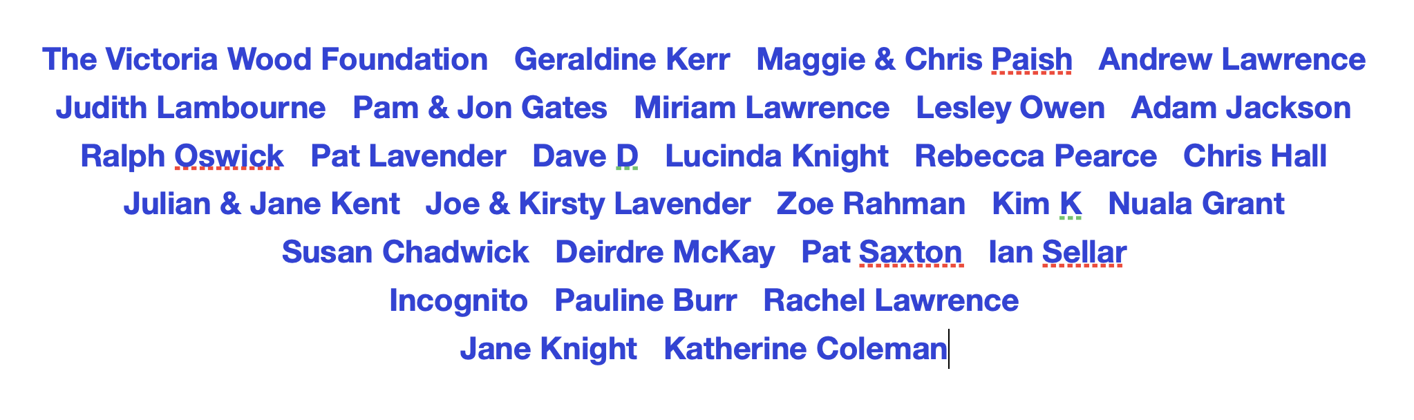 Our thanks also to The Victoria Wood Foundation whose generous support made the film possible. Likewise, to our film production Crowdfunders who gave so generously. And lastly, and most importantly, to our contributors for their courage in speaking so candidly about their experiences and for sharing their insights and wisdom.