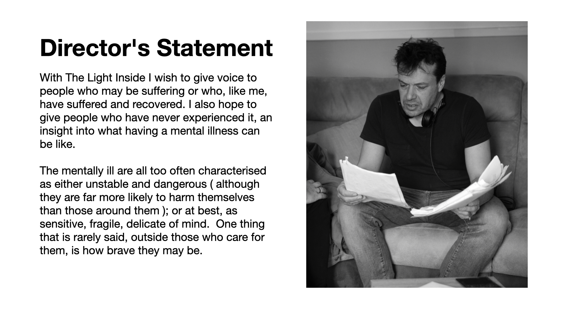 The Light Inside is a new short documentary film by director Jesse Daniel Lawrence. Made in association with The Victoria Wood Foundation and Bath Mind, produced by Harry Knight.
